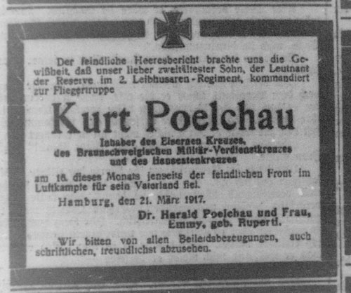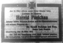 Bei der Erforschung von Einzel-Schicksalen der Fliegerei-Geschichte, trifft der Forscher manchmal auf Familien-Schicksale. Auf Familien, die mehrere Kinder im Krieg verloren haben. So stießen wir auf die Familie Poelchau. Welch unermessliches Leid muss eine Familie verarbeiten, die vier von fünf Kindern im Krieg verlor - noch dazu, wenn zwei Kinder innerhalb von zwei Tagen fallen?