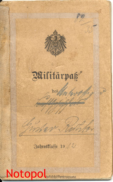 | Gustav Richter wurde am 07. November 1892 in Kettwig geboren. Wann und wo er starb ist zur Zeit nicht geklärt. Er überlebte aber den Ersten Weltkrieg, während dem er bei der Luftschiffer-Truppe gedient hatte. |