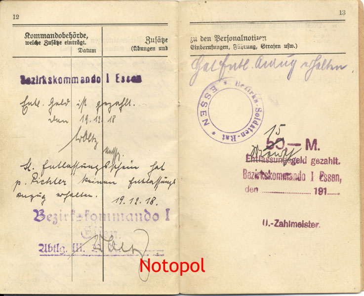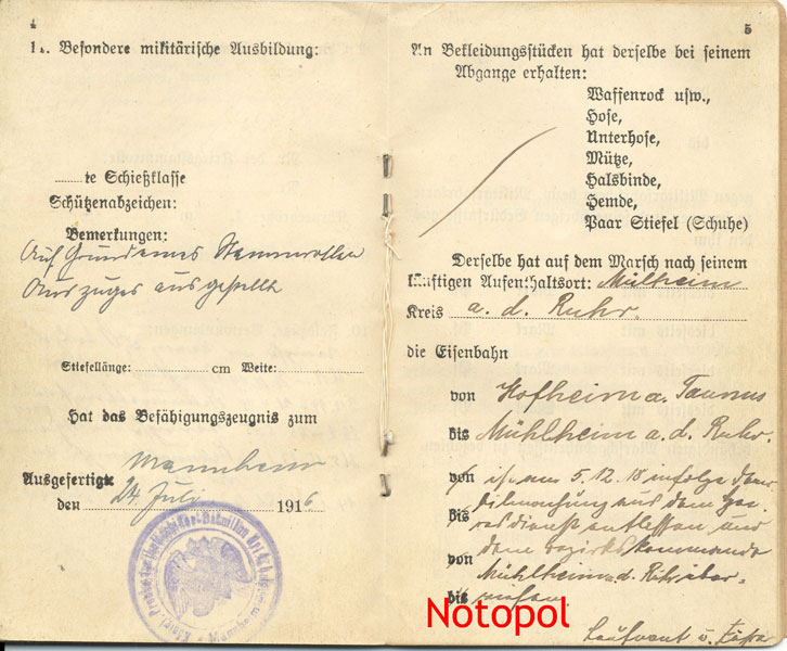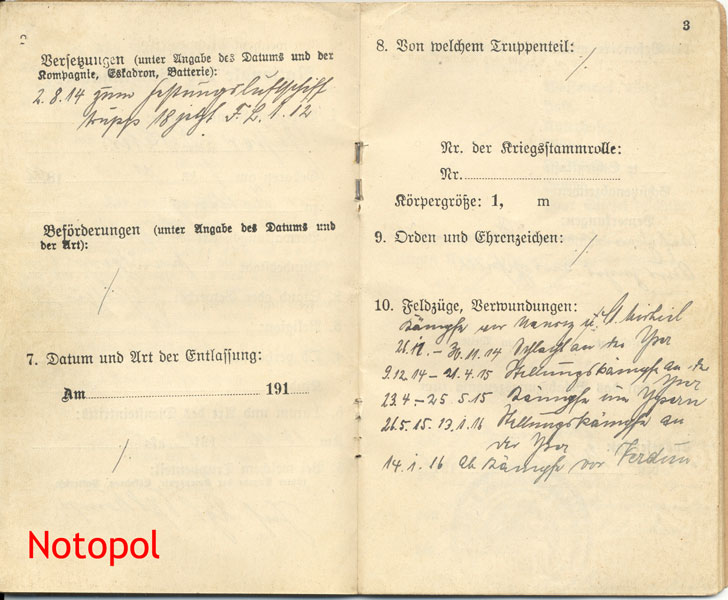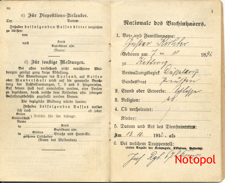 | Am 13. Oktober 1912 trat Gustav Richter in die 8. Kompanie des 4. Magdeburgischen Infanterie-Regiments Nr. 67 (Garnison Metz) ein. |