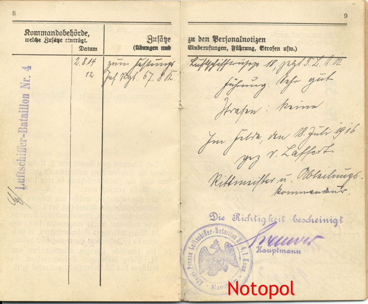 Luftschiffer-Bataillon Nr. 4; Festungs-Luftschiffertrupp 18 (umbenannt in Feldluftschifferabteilung 12) | ||