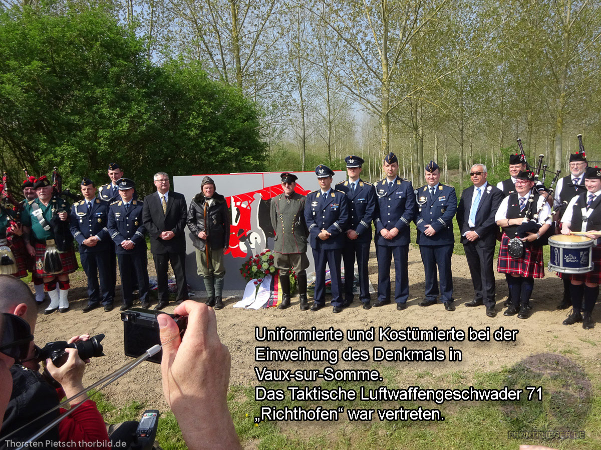 (Richthofen-)Denkmal-Einweihung westlich Vaux-sur-Somme mit Vertretern der Bundesluftwaffe (Geschwader 71 Richthofen).