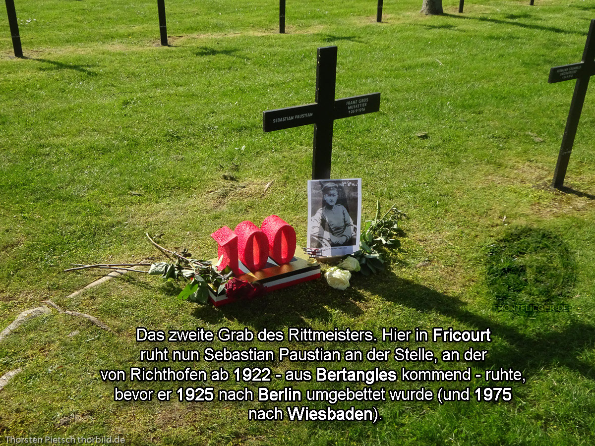 In diesem Grab ruhte Manfred Freiherr von Richthofen (1892 - 1918) zwischen 1922 und 1925.